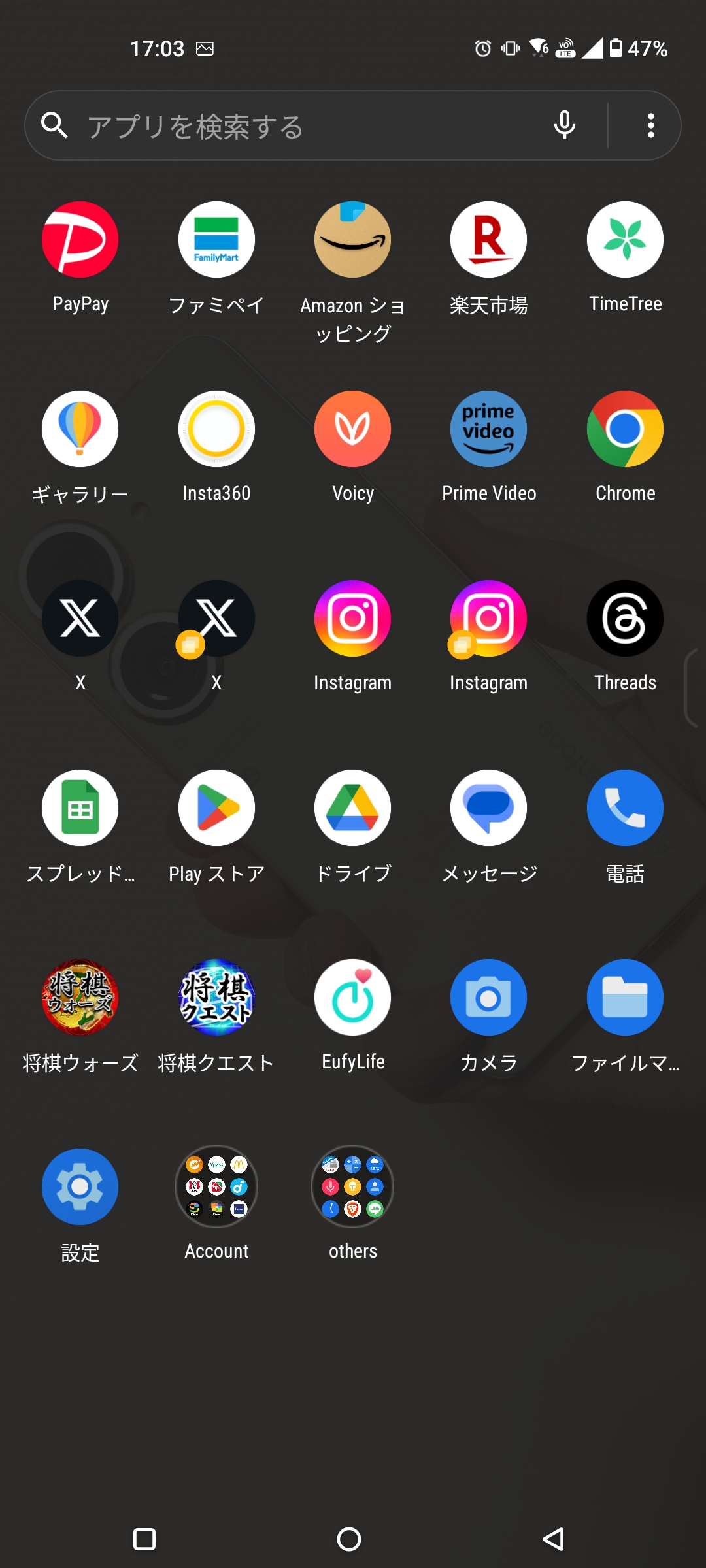 また、ホーム画面のカスタマイズ性以上に便利だと思っているのが、ホーム画面を上にスワイプすれば、下の画像のように全てのアプリを表示することができることだ。